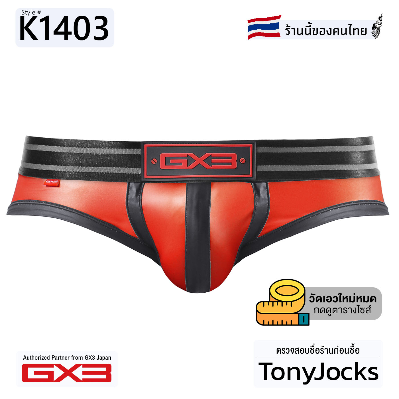 GX3 GX3 Underwear Gloss Touch DX Brief - Red กางเกงชั้นในชาย จาก GX3ทรงบรีฟ มีโลโก้ยางเย็บที่เอวเลือก ไซส์ และ สี จากตัวเลือกเฉพาะตัวสีขาว จะได้ arm bandสินค้าจำหน่ายเป็นชิ้นมีความเซ็กซี่สูงผ้าโพลีเอสเตอร์ เน้นความยืดหยุ่น และ บางเบาราคาจำหน่ายต่อชิ้นCollection Gloss Touch DX (ผ้ามีความมันวาว และ อยู่ทรง) GX3-K1403-RED-SIZE-S GX3 Underwear Gloss Touch DX Brief - Red