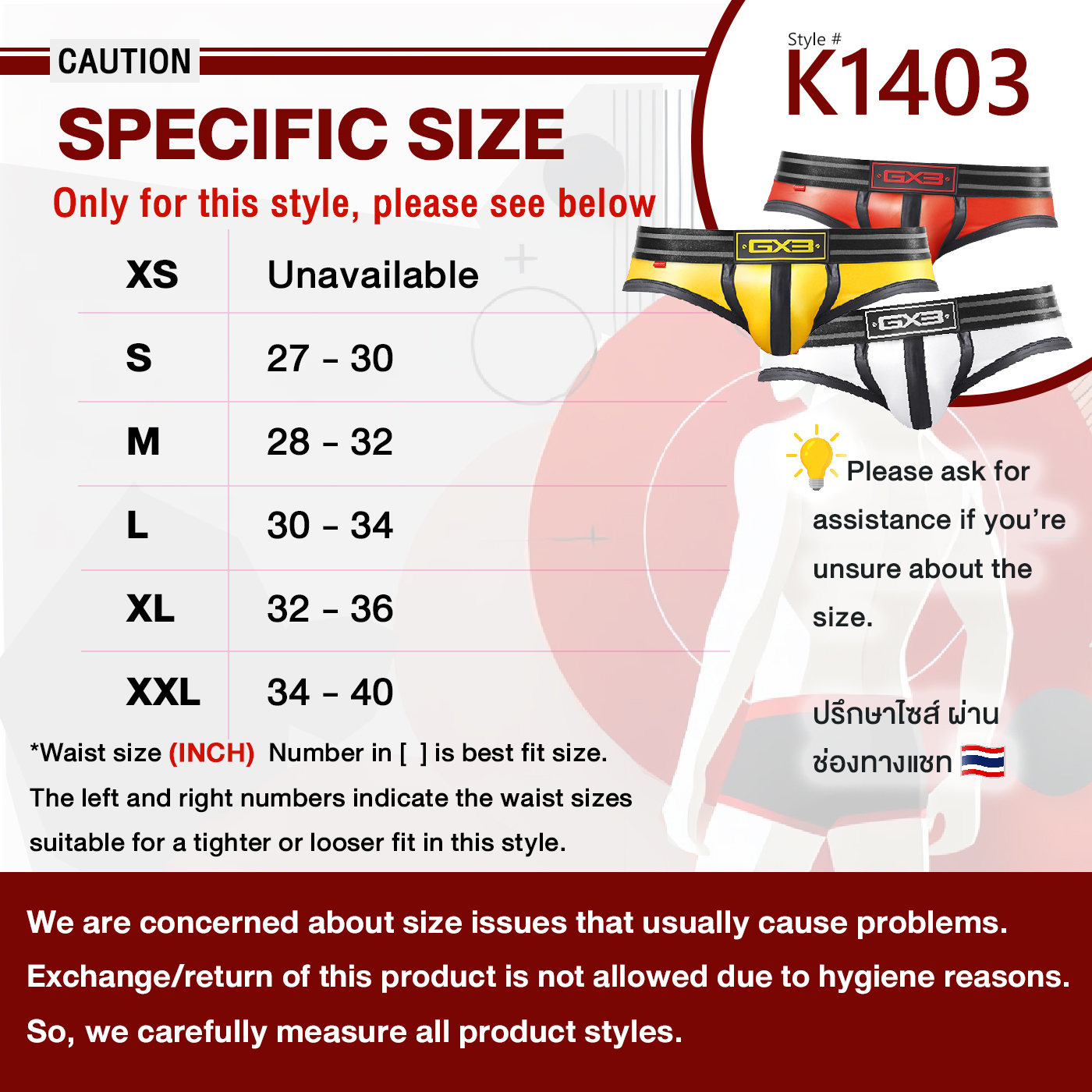 กางเกงชั้นในชาย จาก GX3ทรงบรีฟ มีโลโก้ยางเย็บที่เอวเลือก ไซส์ และ สี จากตัวเลือกเฉพาะตัวสีขาว จะได้ arm bandสินค้าจำหน่ายเป็นชิ้นมีความเซ็กซี่สูงผ้าโพลีเอสเตอร์ เน้นความยืดหยุ่น และ บางเบาราคาจำหน่ายต่อชิ้นCollection Gloss Touch DX (ผ้ามีความมันวาว และ อยู่ทรง)